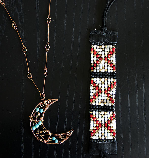 Size: Pendant: 2 x 2 in., Bracelet: 1.2 x 5.5 in.
