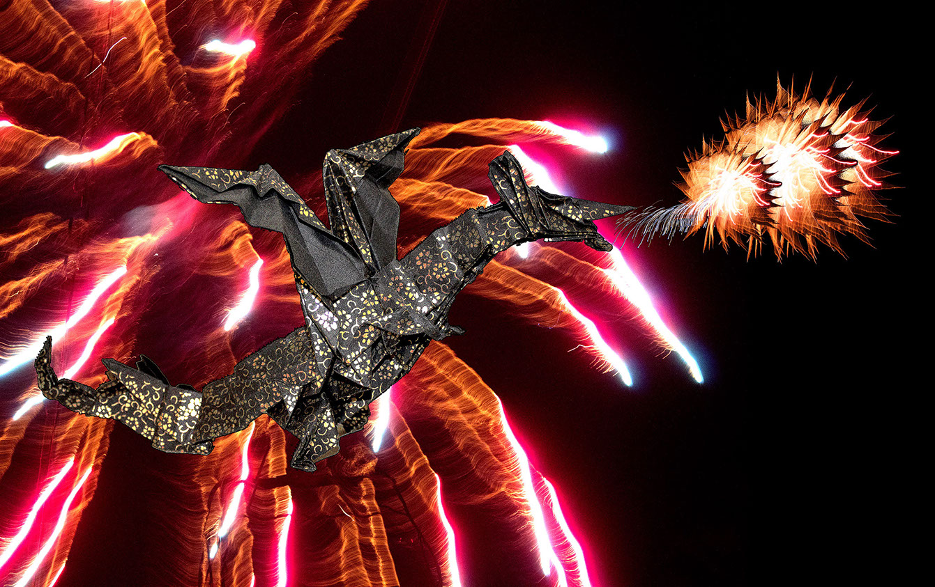 Created with origami model "Fiery Dragon" designed by Kade Chan