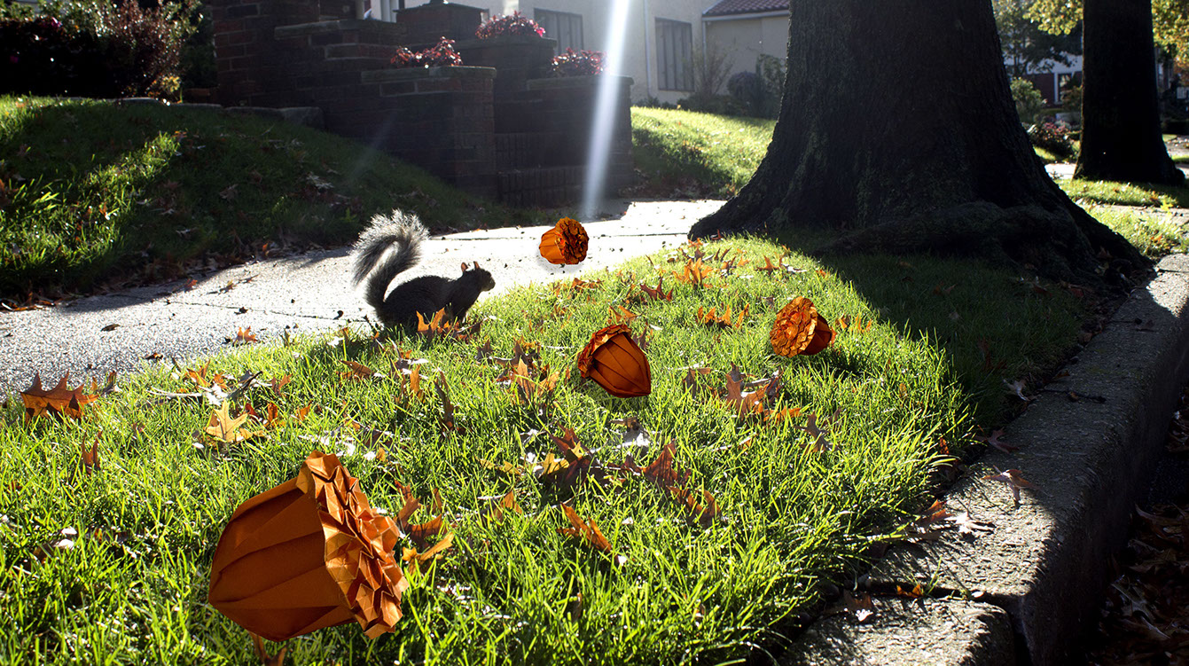 Created with origami models "Acorn" designed by Beth Johnson and "Spread Hex Tessellation" designed by Eric Gjerde